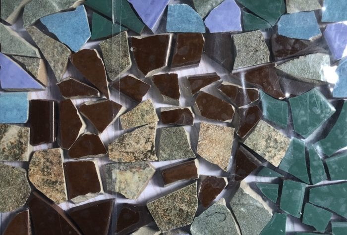 Waterford High School students working on their mosaics. These will be attached to pavers that will create the walking paths of the labyrinth.